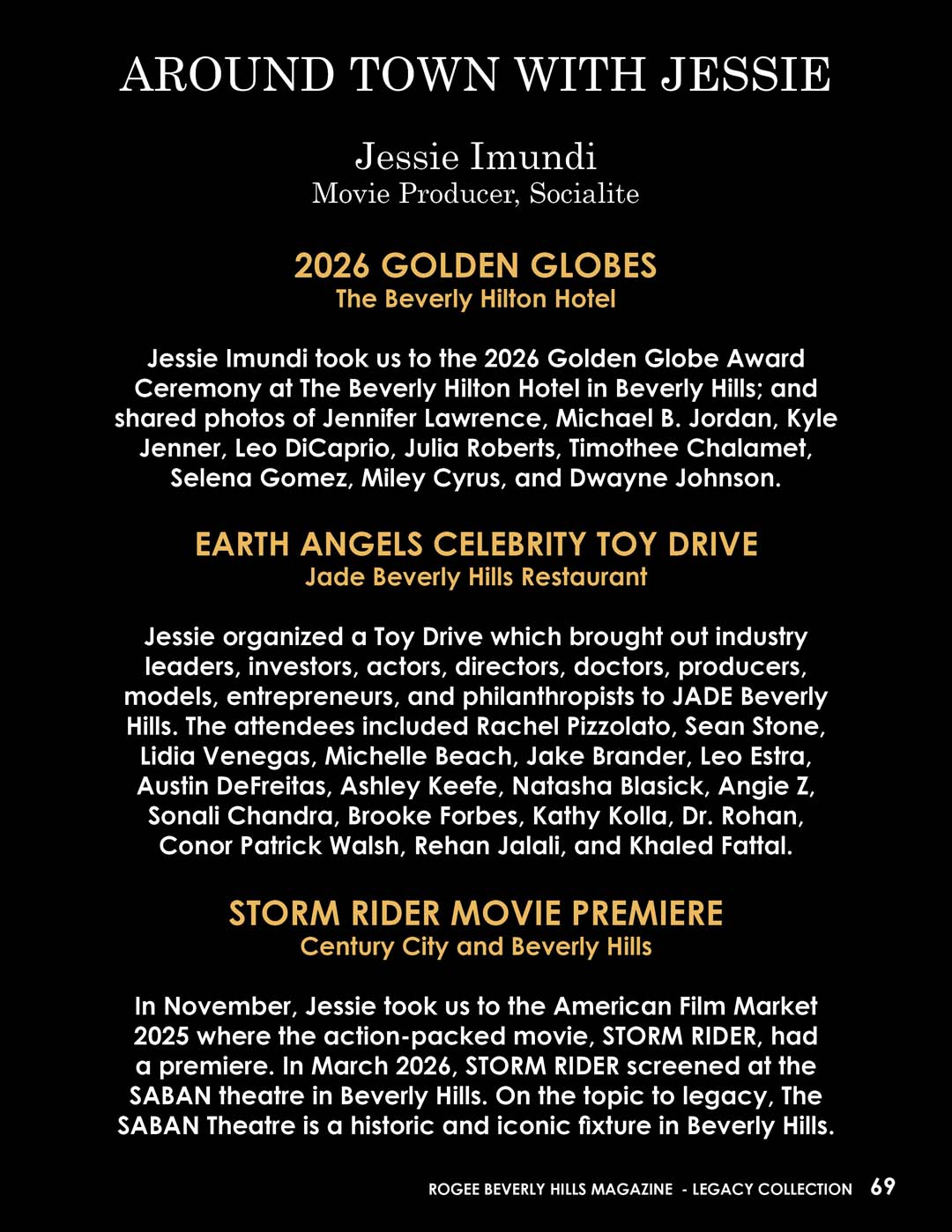 In November, Jessie took us to the American Film Market 2025 where the action-packed movie, STORM RIDER, had a premiere. In March 2026, STORM RIDER screened at the SABAN theatre in Beverly Hills. On the topic to legacy, The SABAN Theatre is a historic and iconic fixture in Beverly Hills.