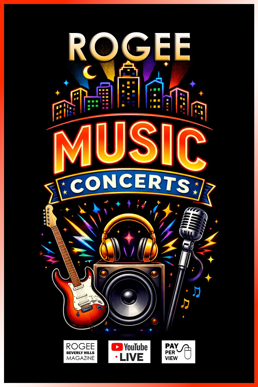 ROGEE of BEVERLY HILLS continues to enlist a diverse group of great up-and-coming and well-established comedians, musical artists, fashion designers, and models to our LIVE PAY-PER-VIEW SHOWS. Enjoy great music concerts, fabulous fashion shows, and laugh-out-loud comedy series from the comfort of your home -- watch on your handheld devices or on large TV screen with your friends or family.
